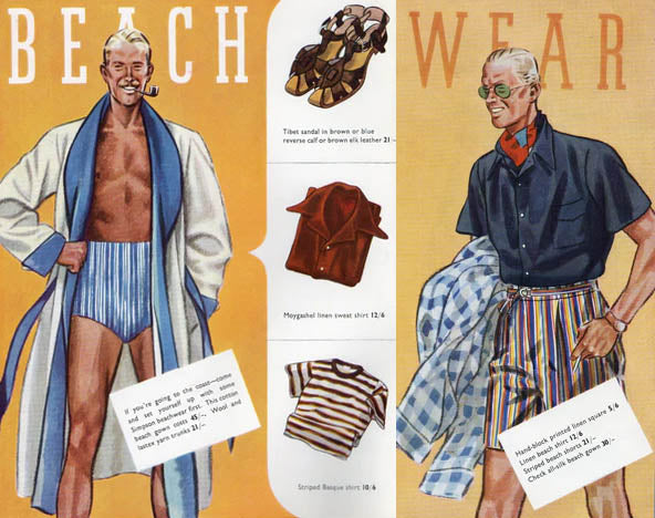 British manufacturers produced open collar shirts as seen in a late 1930’s Simpsons catalogue, in which they are described as ‘sweat shirts’ and ‘beach shirts’.