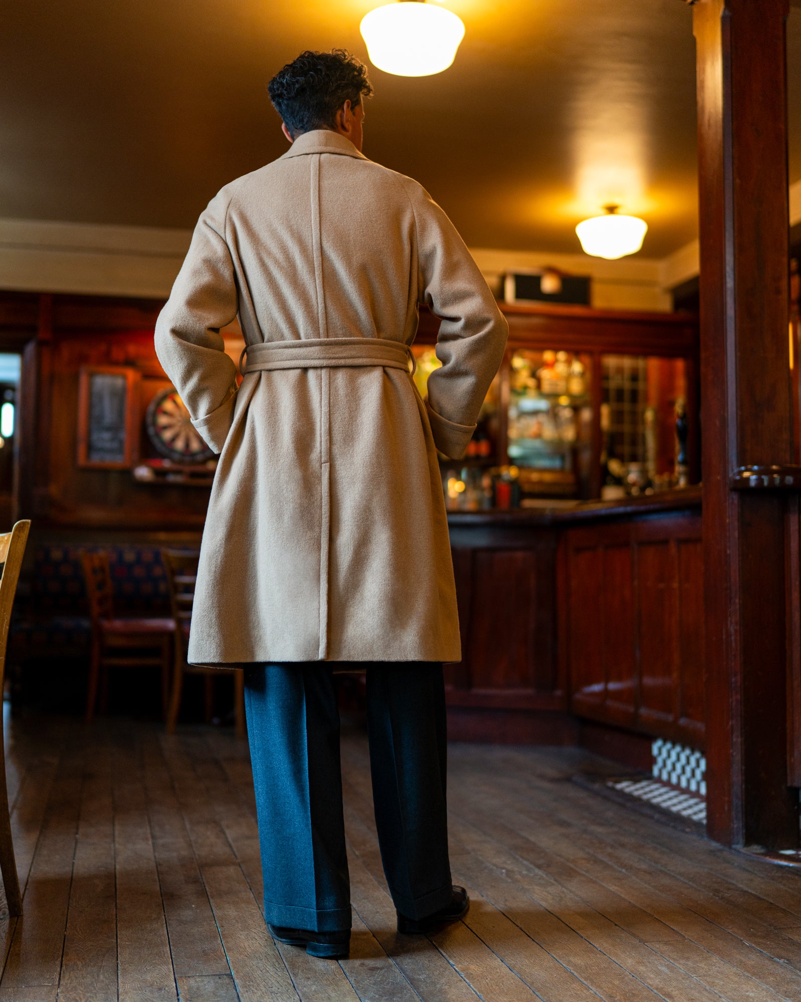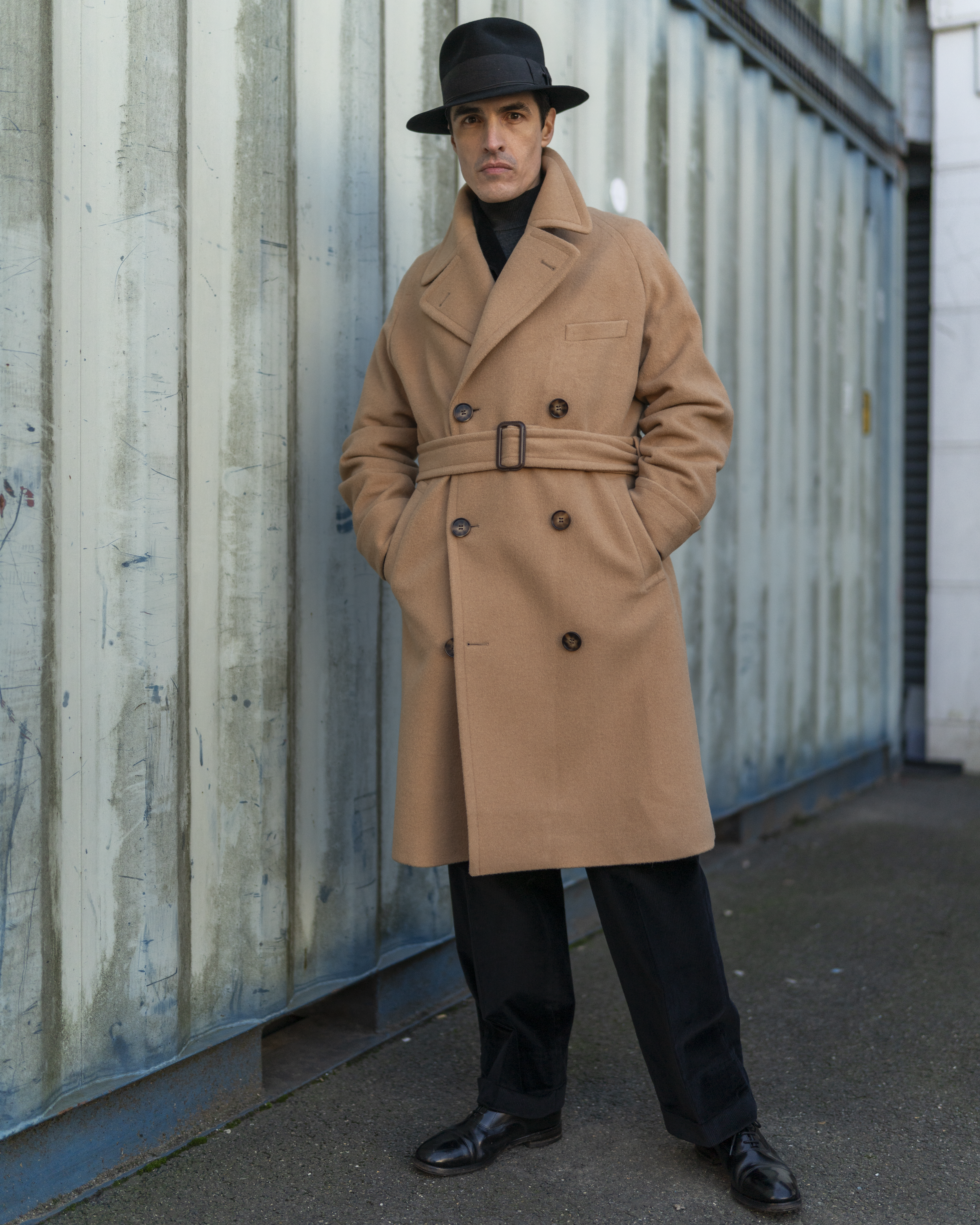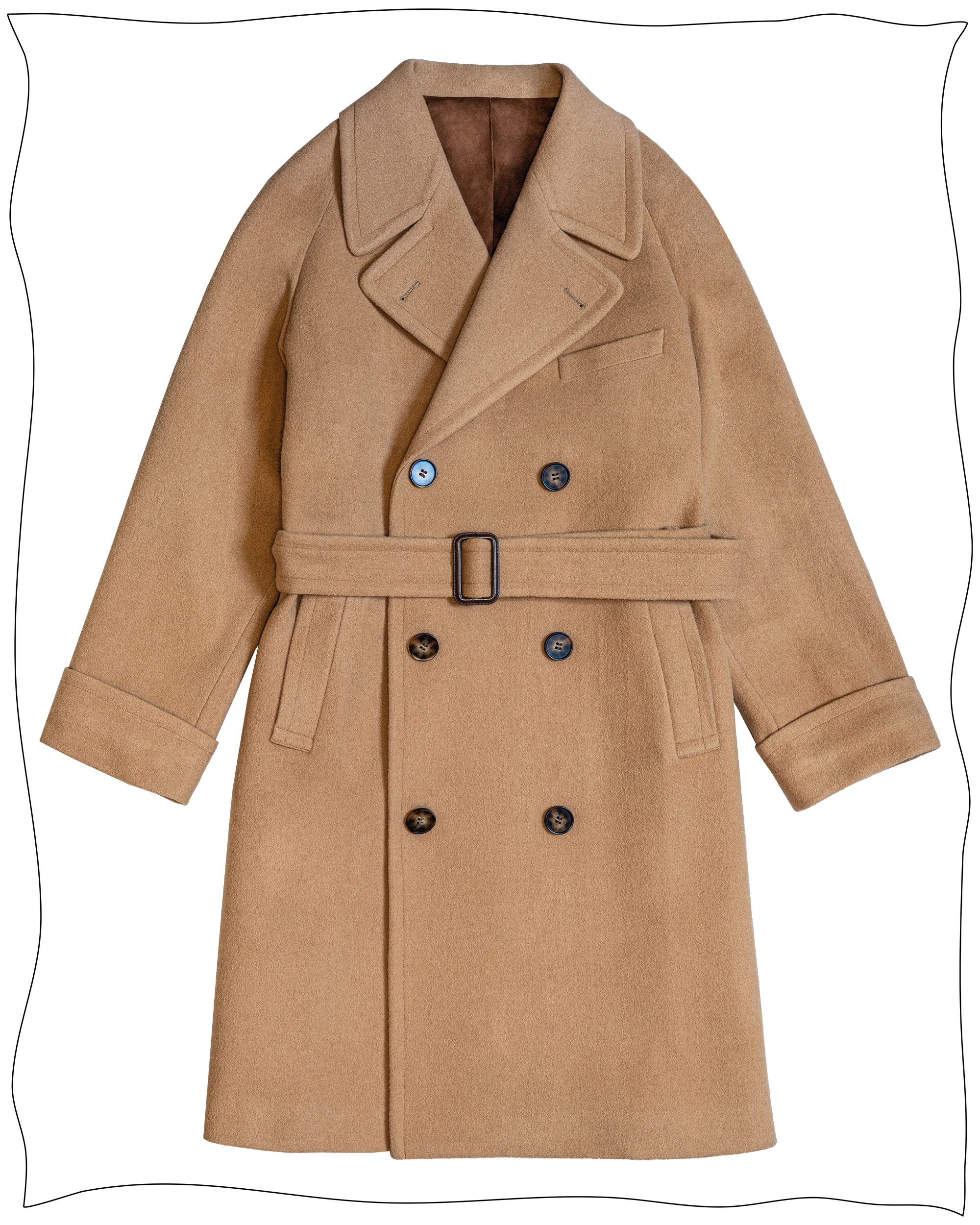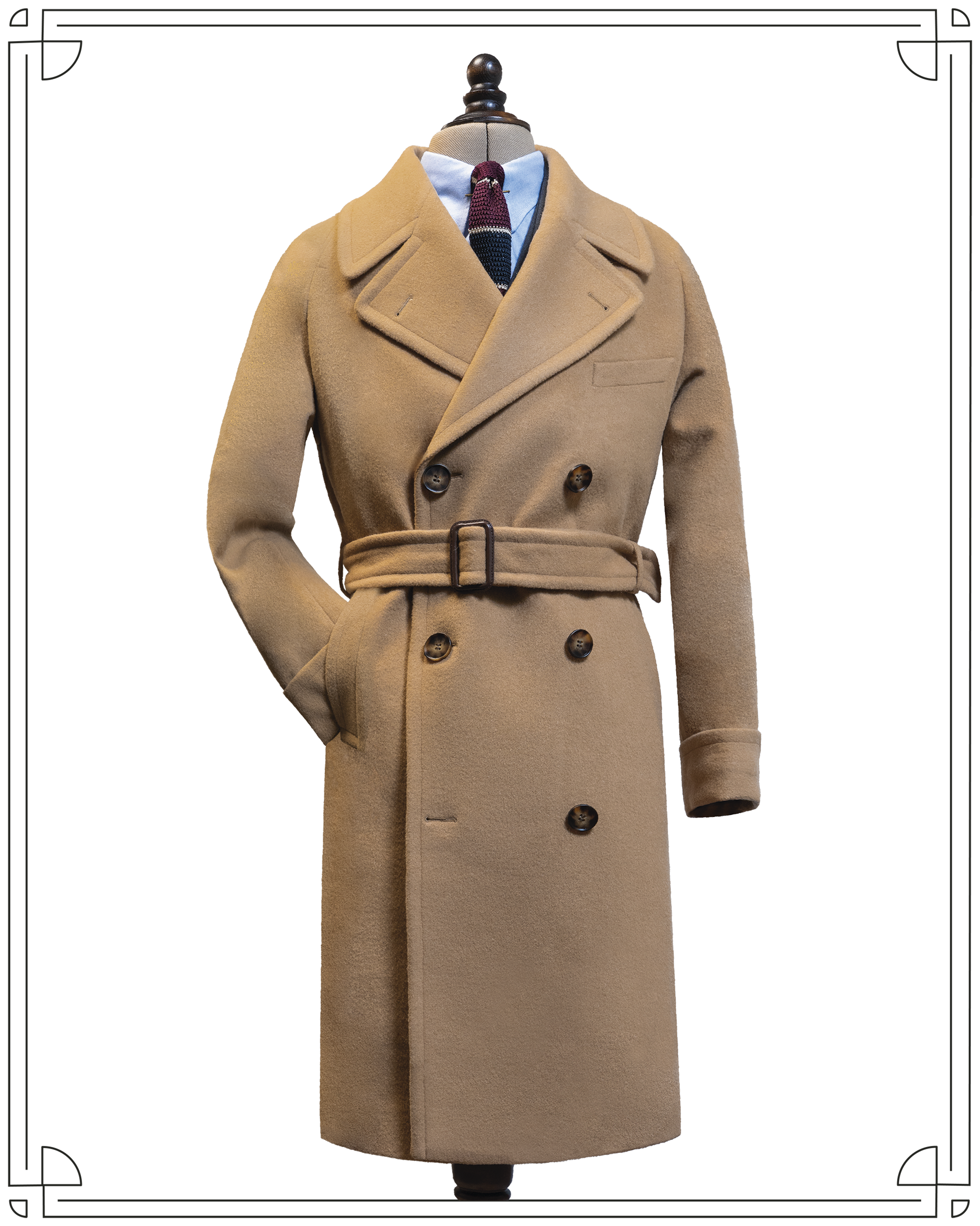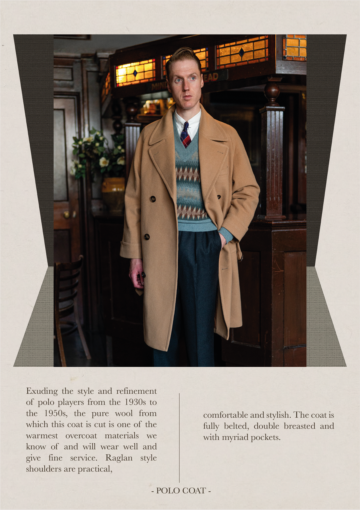 Exuding the style and refinement of polo players from the 1930s to the 1950s, the wool from which this coat is cut is one of the warmest overcoat materials we know of and will wear well and give fine service. Raglan style shoulders are practical, comfortable and stylish. The coat is fully belted, double breasted and with myriad pockets.