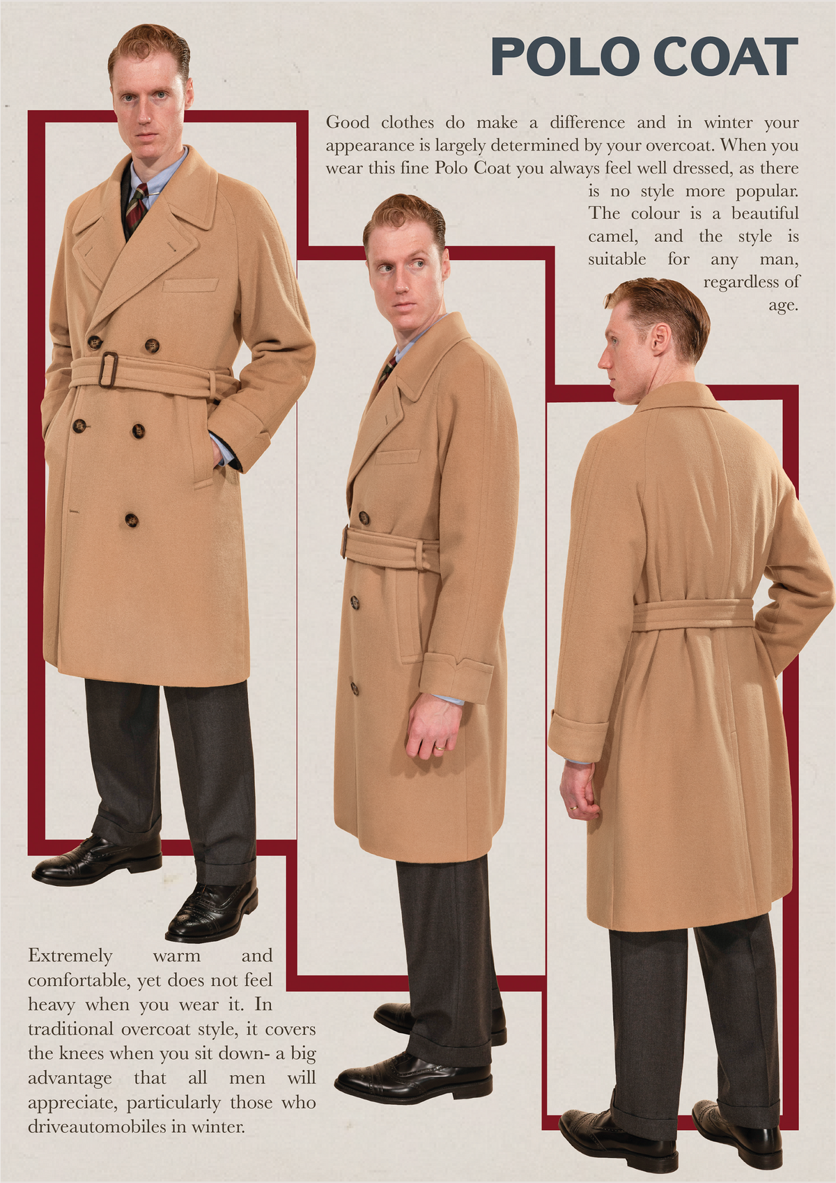 In winter your appearance is largely determined by your overcoat. When you wear this fine Polo Coat you always feel well dressed. Shipping now.