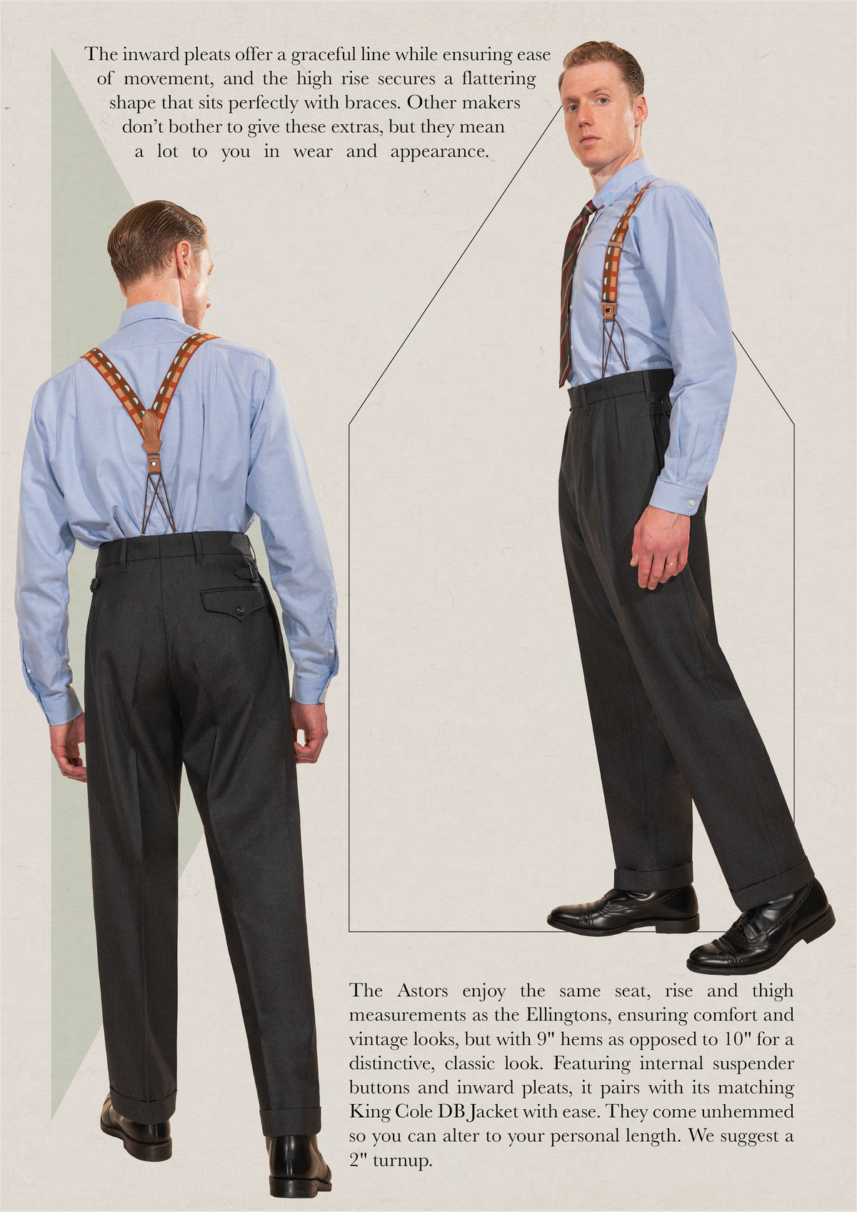 Featuring a classic cut leg, every detail of the Astors reflects the sensibilities of late 1930s to 1940s tailoring. Shipping now.
