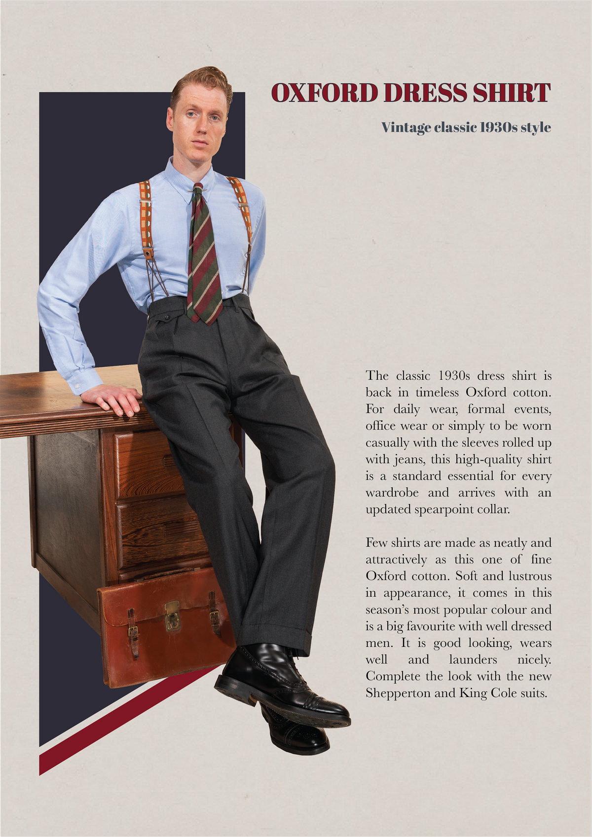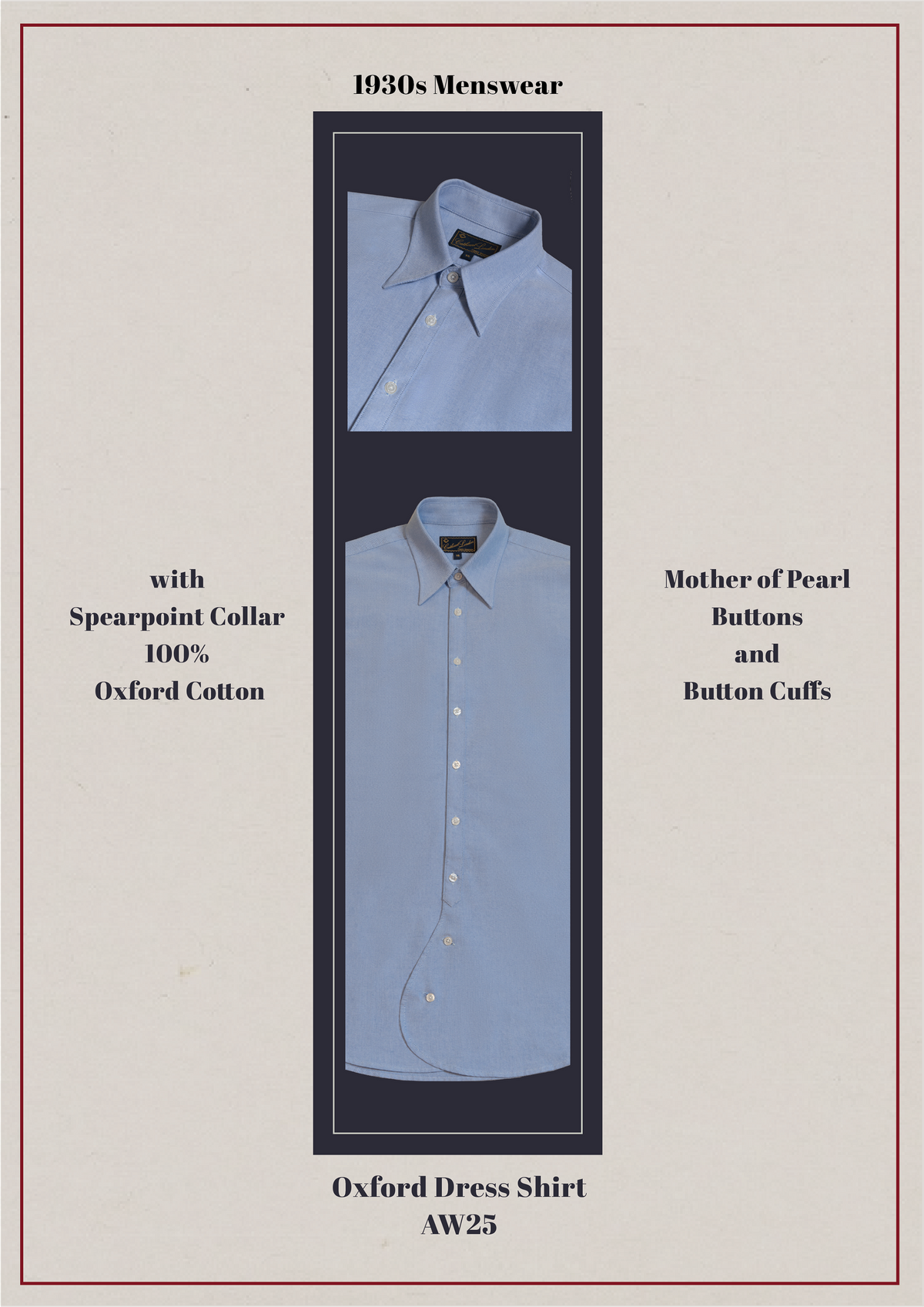 The classic 1930s dress shirt is back in timeless Oxford cotton. For daily wear, formal events, office wear or simply to be worn casually with the sleeves rolled up with jeans, this high-quality shirt is a standard essential for every wardrobe and arrives with an updated spearpoint collar.