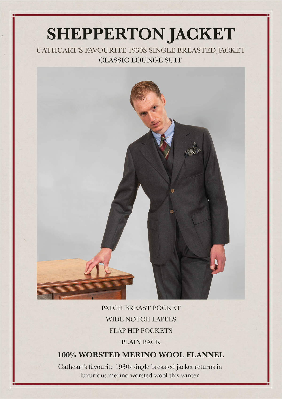 Cathcart’s favourite 1930s single breasted jacket returns in luxurious merino worsted wool this season. Shipping now.