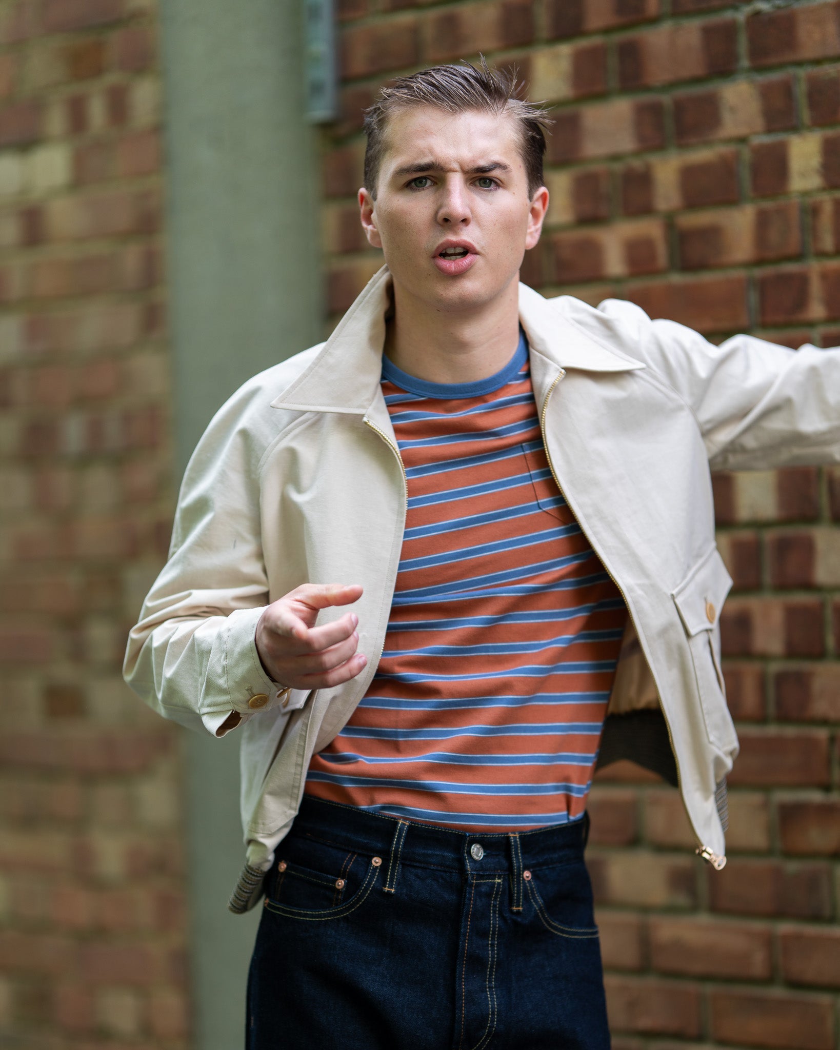 This all-season tee comes with a classic twin-stitched ringer collar and sleeves, and includes a front chest pocket. Made of 100% cotton. Available in Rust and Jade.
