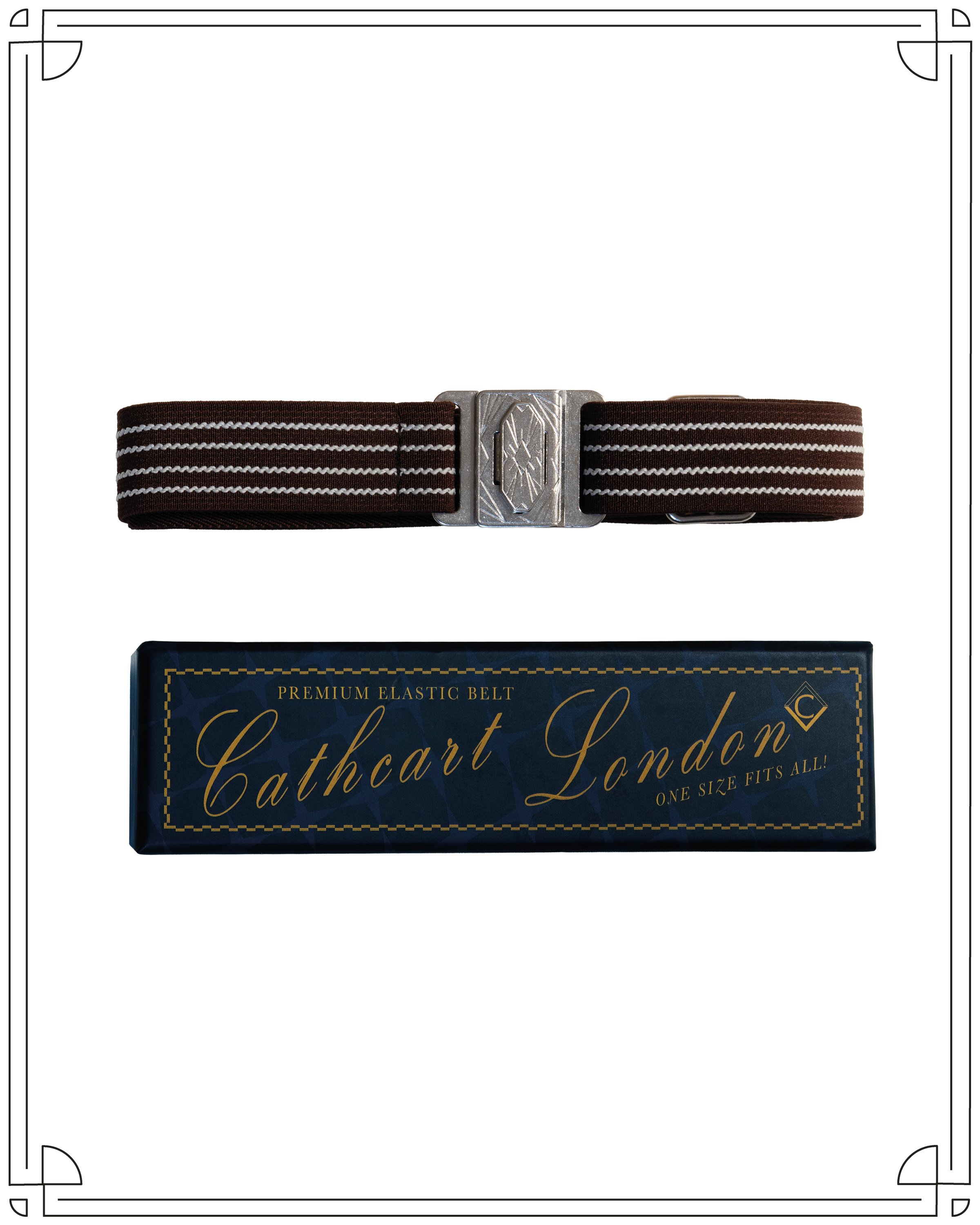 Arriving in four classic colourways, it makes for the perfect Cathcart Christmas gift, arriving in a unique presentation box. Made of sturdy elastic and built to last. Because the workmanship is good and the knit firm and strong, this belt will withstand daily wear and provide satisfactory service, hoisting up all manner of trousers whilst offering uncompromising classic style. One size fits all with the adjustable metal buckle.