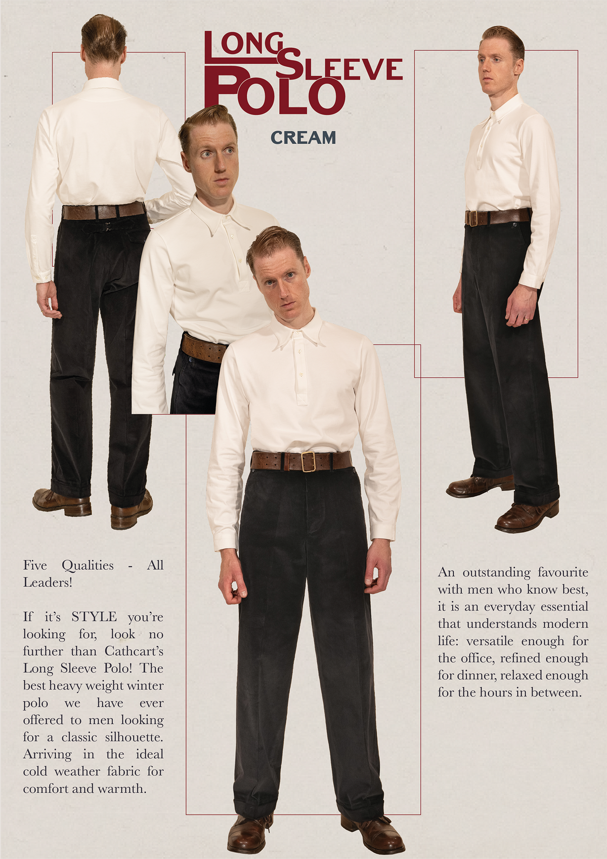 If it’s STYLE you’re looking for, look no further than Cathcart’s Long Sleeve Polo! The best heavy weight winter polo we have ever offered to men looking for a classic silhouette. Arriving in the ideal cold weather fabric for comfort and warmth. The structure of a traditional shirt is present - the collar, the placket, the cuffs but reimagined in the supple drape of jersey, they lose their rigidity and gain a quiet sense of freedom. Arriving with the classic spearpoint collar, this closed placket Long Sleeve Polo in Cream is an old Cathcart classic that never loses favour.