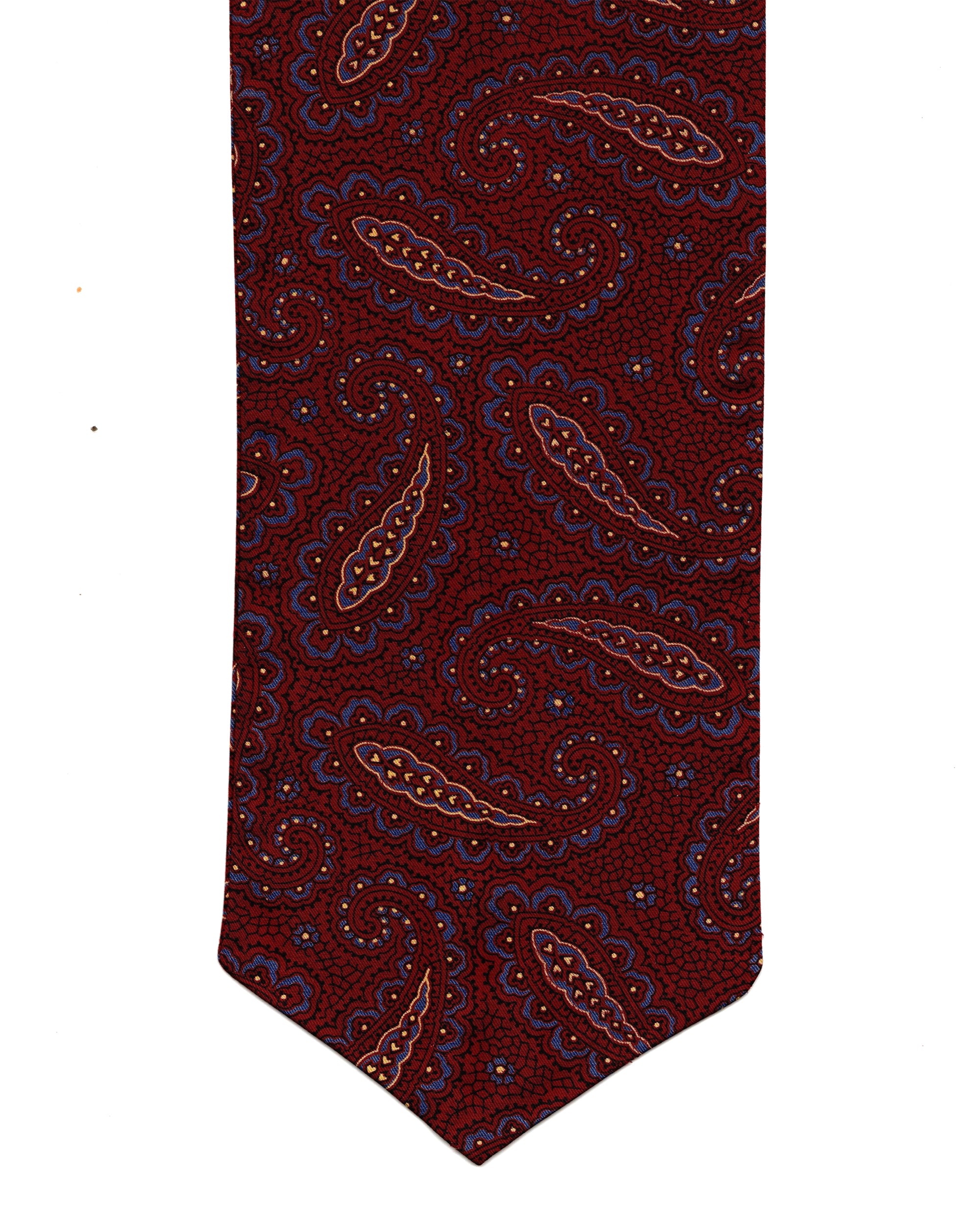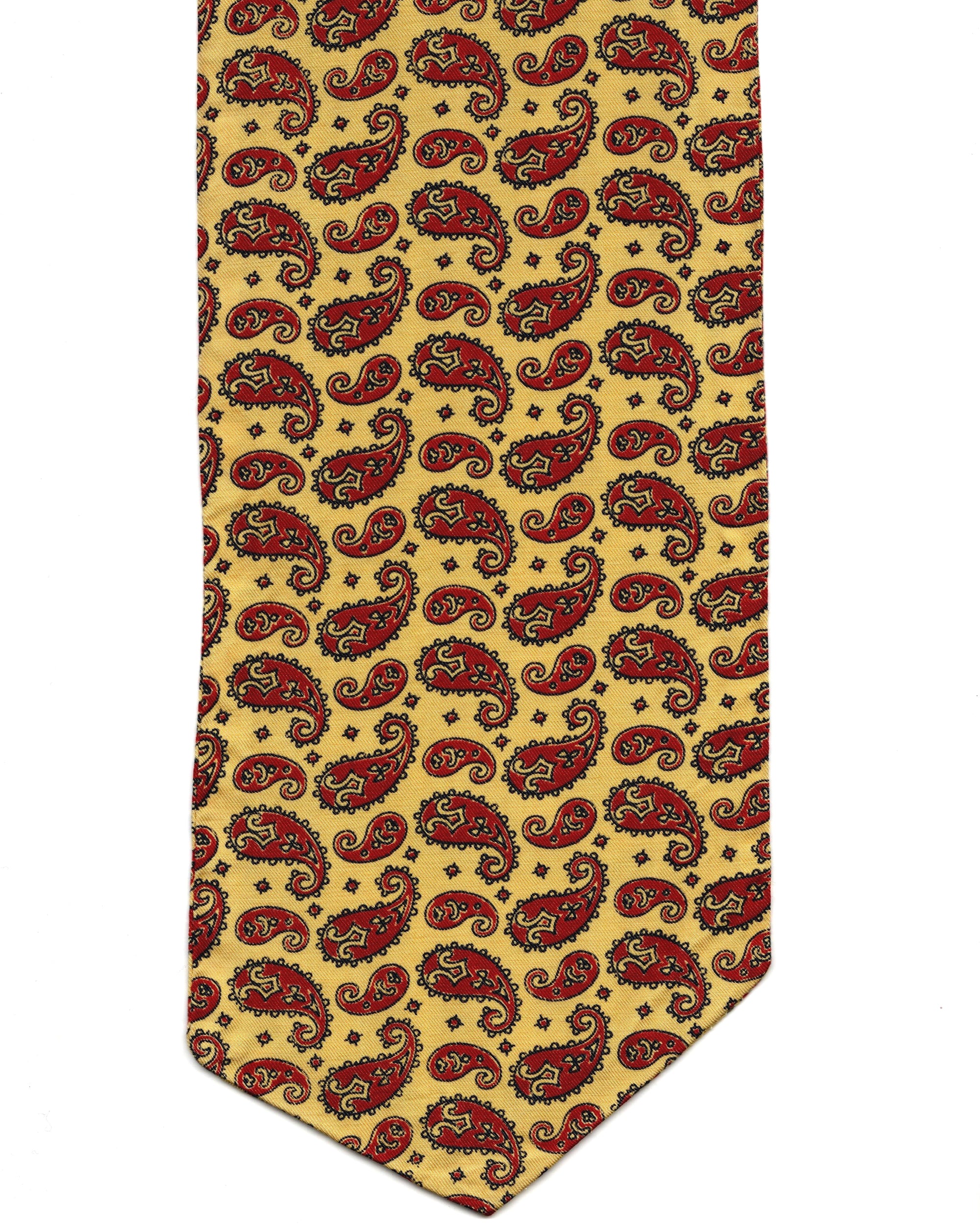 Here we have three mid-20th Century rayon cravats made by the legendary British brand Tootal. We have chosen each set to cravats to give you a selection of patterns and colours. Tootal was one of the most notable British cotton and rayon manufacturers of the 20th Century. Their prolific scientists were responsible for developing and refining crease-resistant, colour-fast cottons and luxuriously soft rayon fabrics. The results of their endeavours were fabrics which offer high-quality products to the mass market. Tootal’s fabrics were exported worldwide and their patented processes for treating fibres were used under licence to produce fine fabrics. In the menswear world, Tootal’s ties, scarves and cravats dominated the marketplace due to their ability to resist creases and the ease with which they could be washed. In addition, Tootal didn’t just rely on its fabrics but also excelled in the colours and patterns they offered. Every colour and every imaginable design were available. Paisley patterns were a favourite, in particular their ‘art deco’ inspired reinterpretations of the style. There were also polka-dots, stripes, abstract patterns, gothic swirls and solid colours. This range of colours and styles means Tootal offered a cravat for every possible outfit. The result of the variety of colours and styles is a thriving collectors market for vintage Tootal products.