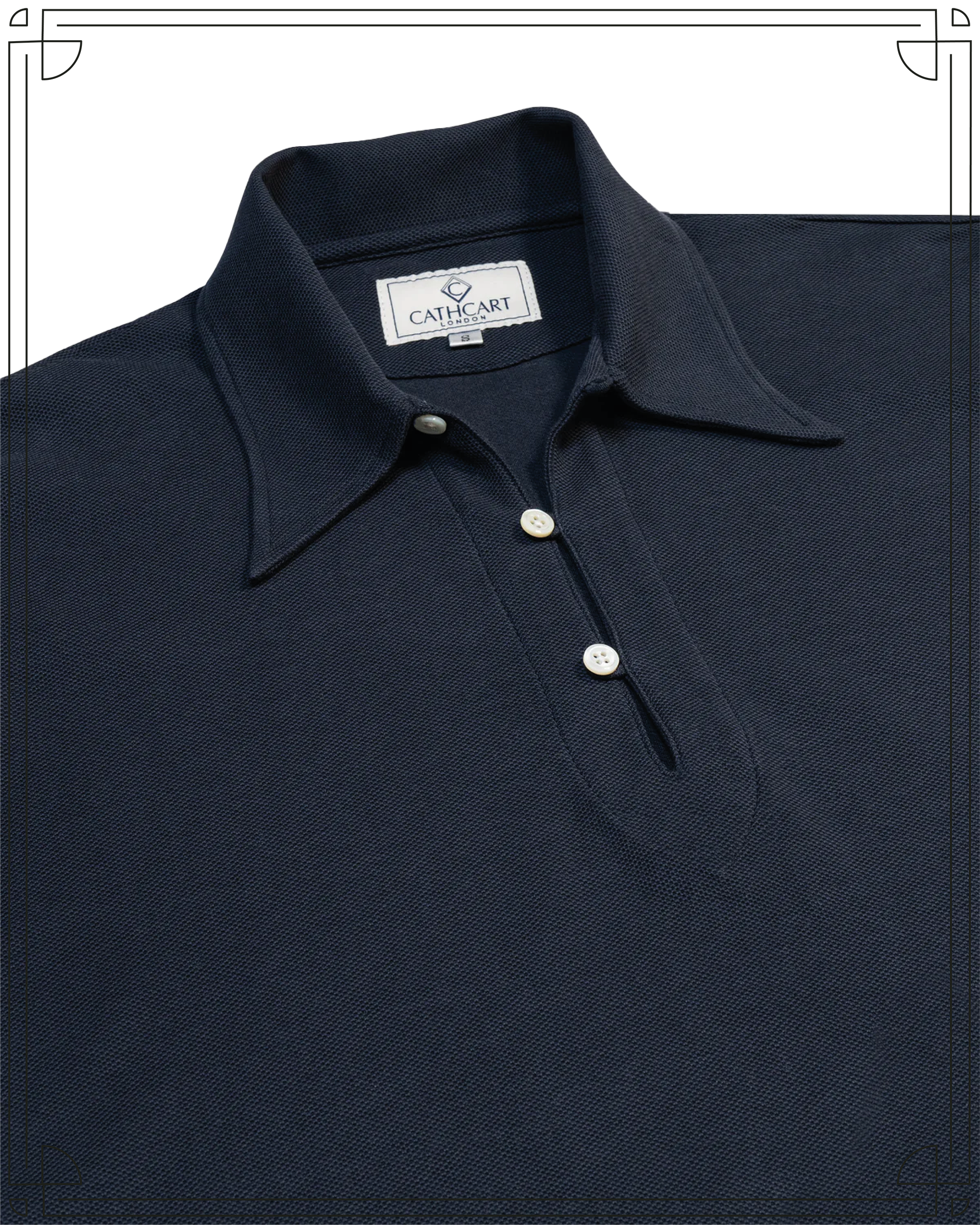 The iconic Cathcart Deco Polo. Widely imitated but never duplicated, this original design features our signature spearpoint collar and open ‘deco’ placket. In quality pique cotton, this classic polo oozes character and timeless style. Rock this polo shirt from the fairway to the seaside promenade. Collect them all in Navy, Racing Green, Cream, Chilli, Sand, Chocolate, Olive, Sky Blue, Black, and Burgundy.