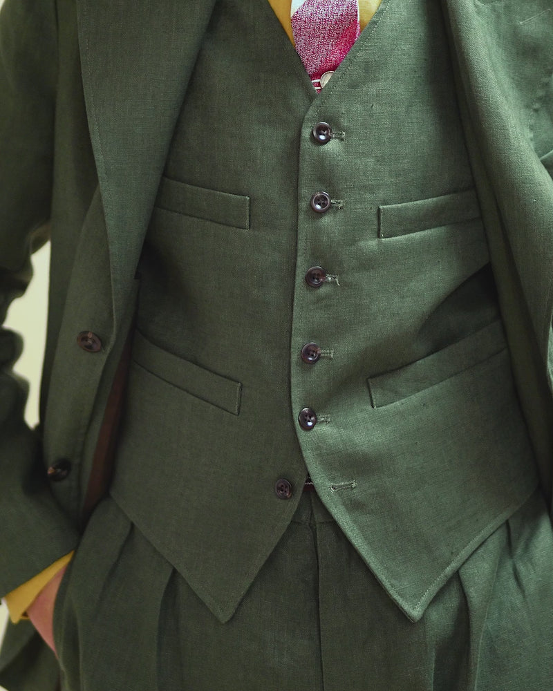 The icing on the cake of the King Cole Suit is this handsome four pocket waistcoat, arriving in the very same linen fabric.