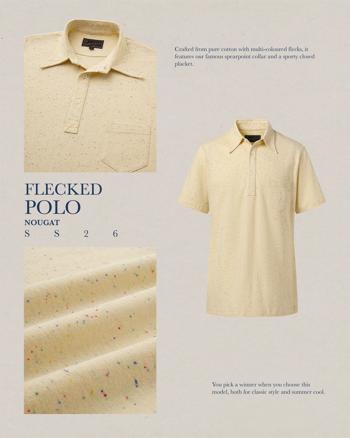 Style authorities recommend this classic Cathcart Polo in Cream, woven from flecked cotton.