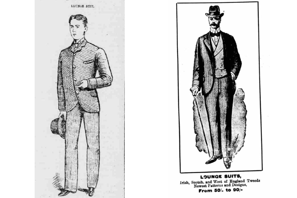Right: An advertisement for lounge suits in the final days of the 19th Century (Irish Field - Saturday 26 August 1899)