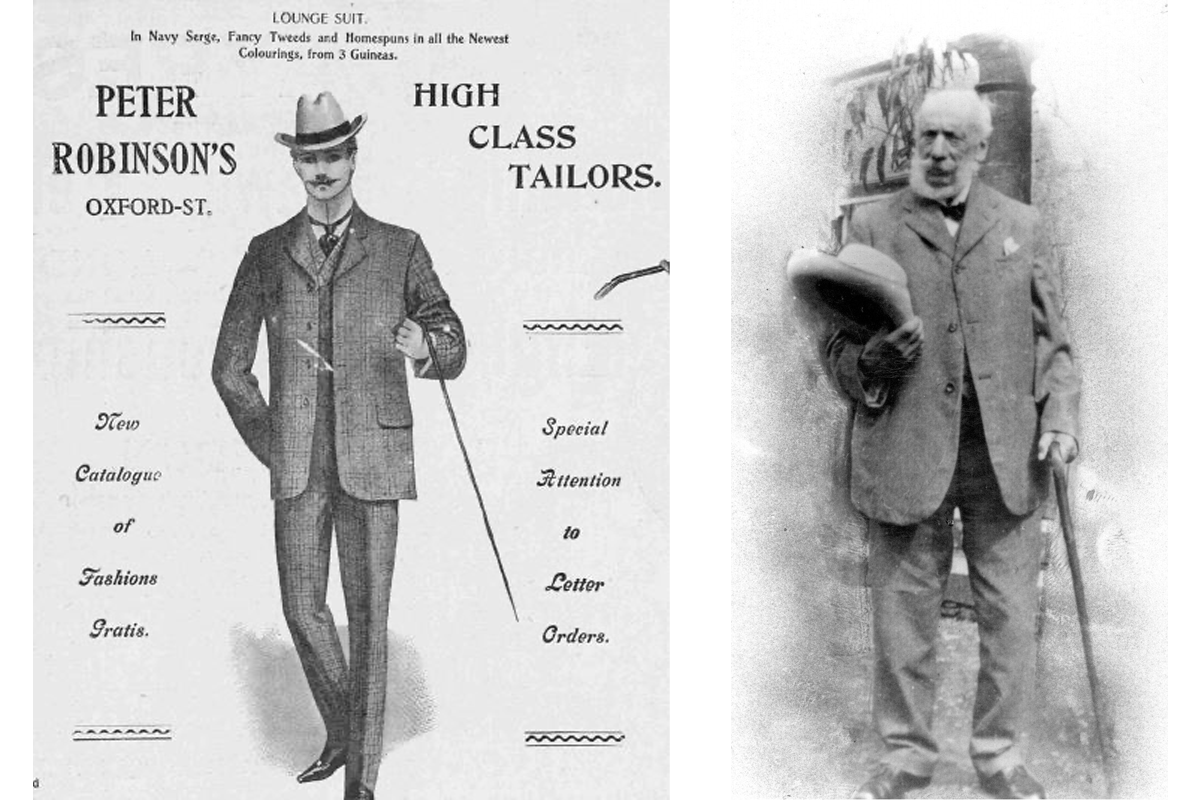 Left: Early 20th Century advertisement for a lounge suit (Illustrated Sporting and Dramatic News - Saturday 31 May 1902)