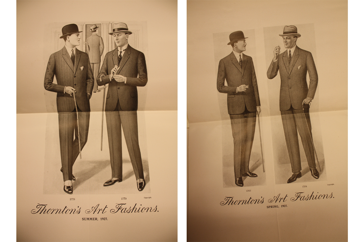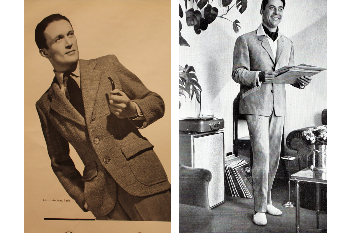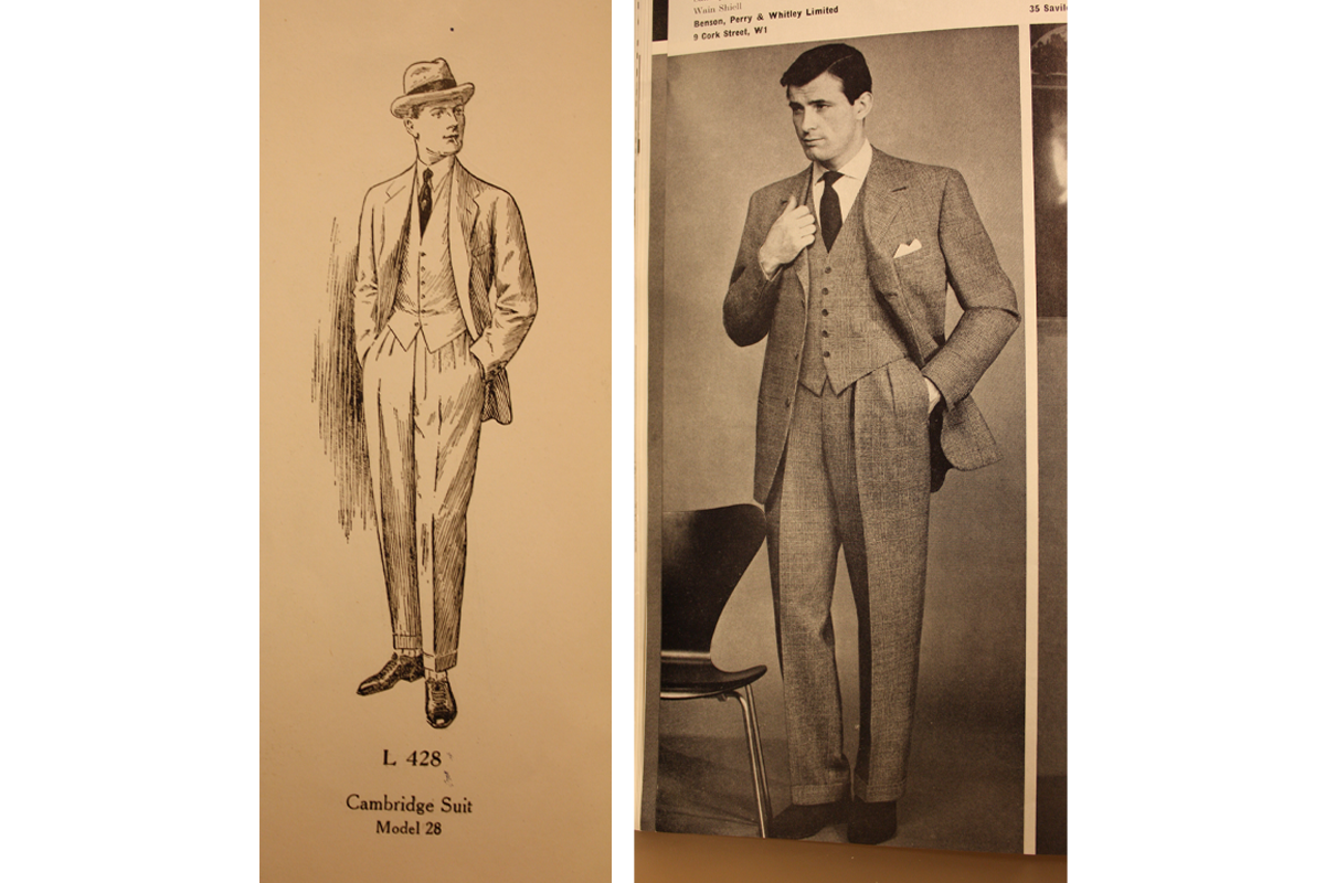 A comparison showing the lounge suits of the 1920s and the 1960s.