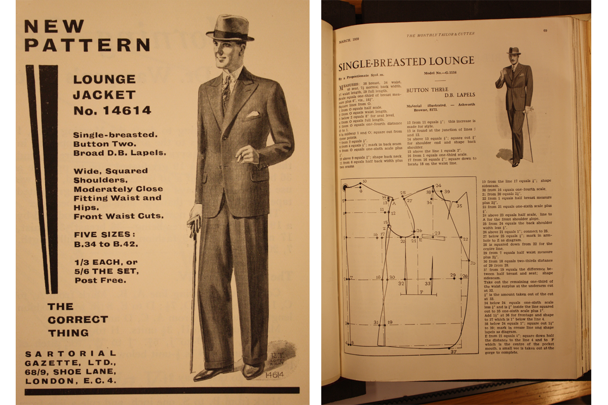 Left: An advertisement for a lounge suit pattern (Sartorial Gazette, 1931)