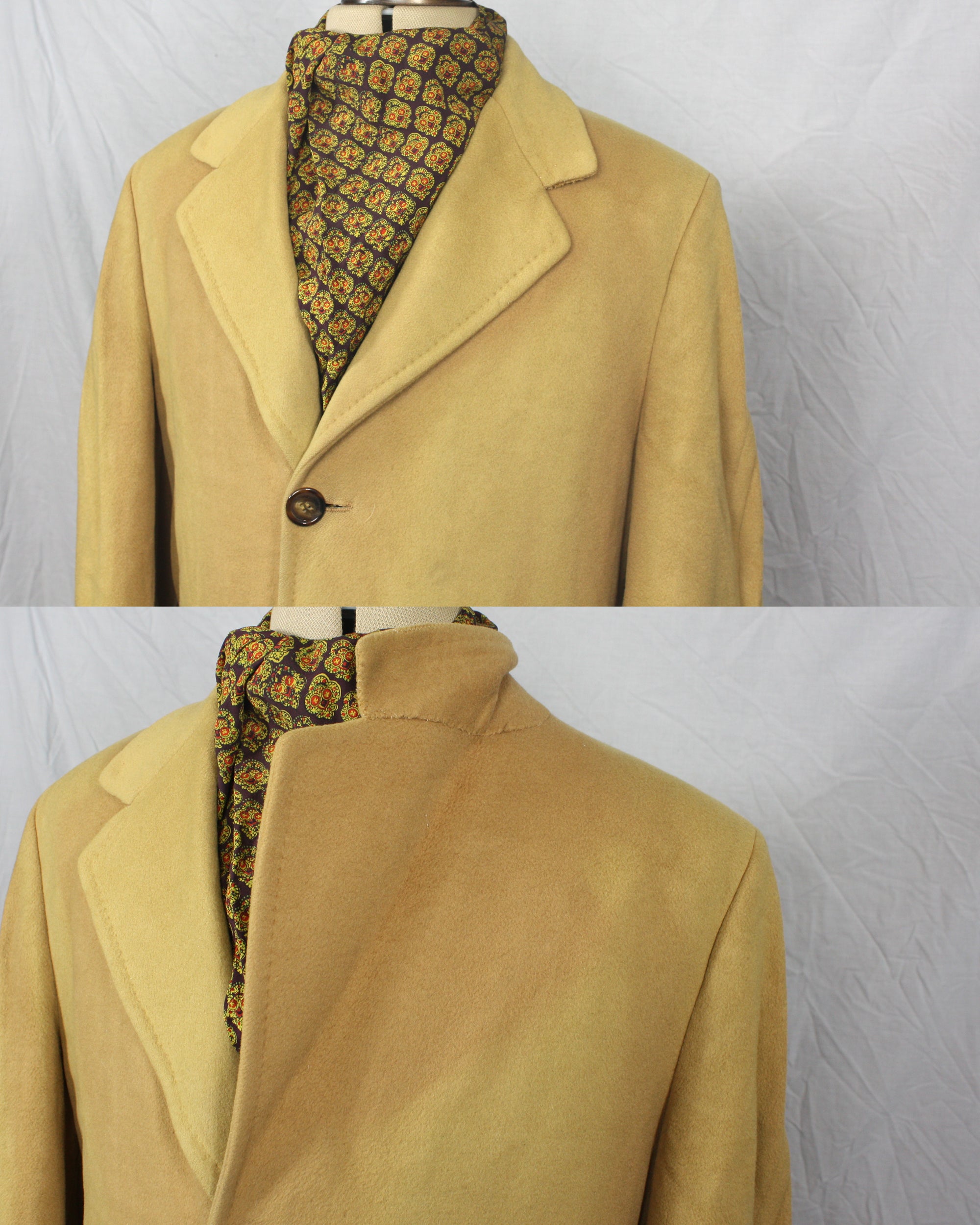This high-quality and luxurious American overcoat dating from the mid-20th Century, is made from what its label describes as “the Orient’s rarest prized 100% Mongolian Cashmere” and is therefore a very luxurious and relatively lightweight coat. It was made by the Eldridge brand and sold by the Harry Rothman menswear shop, based in New York’s 5th Avenue, which was established in 1926.