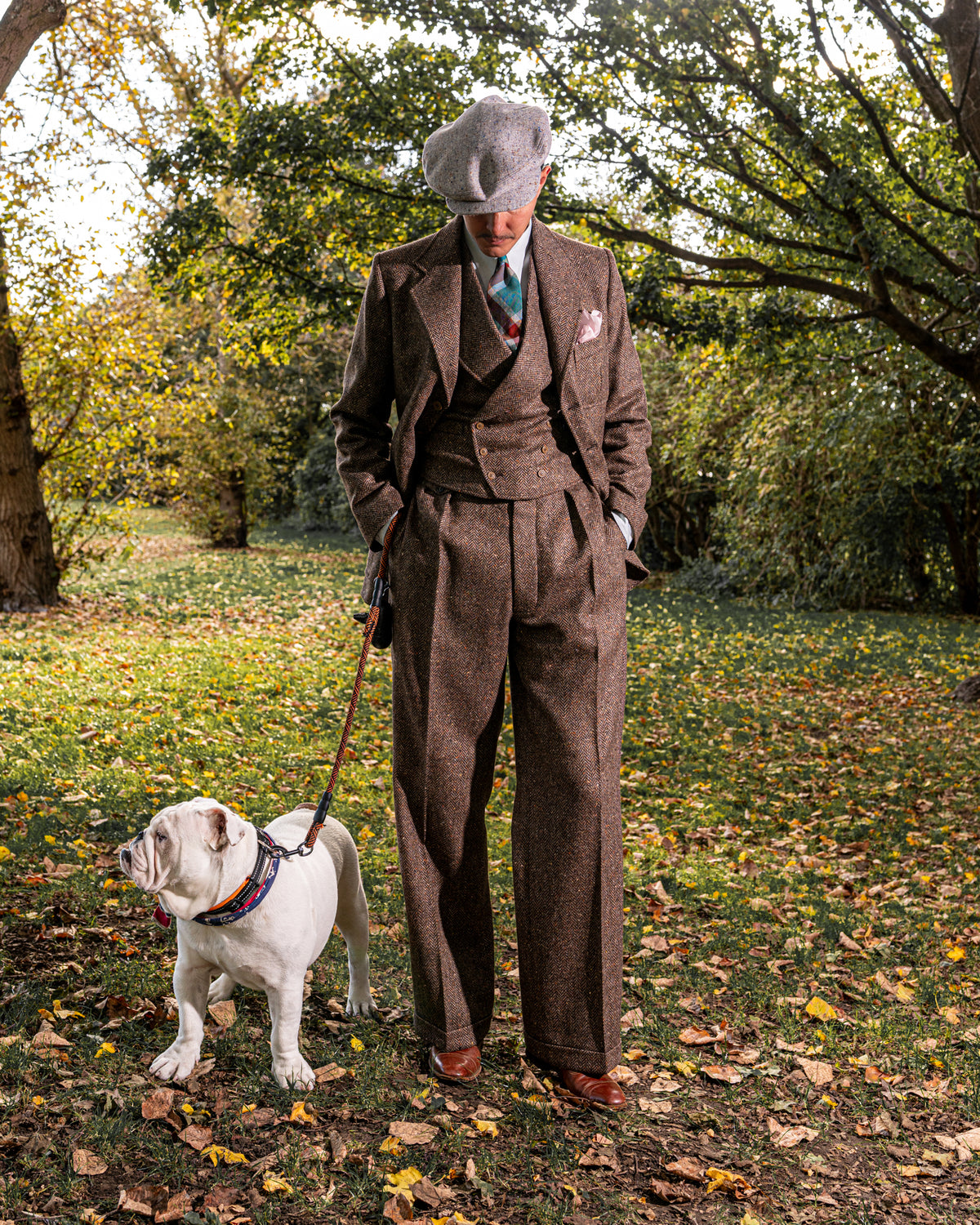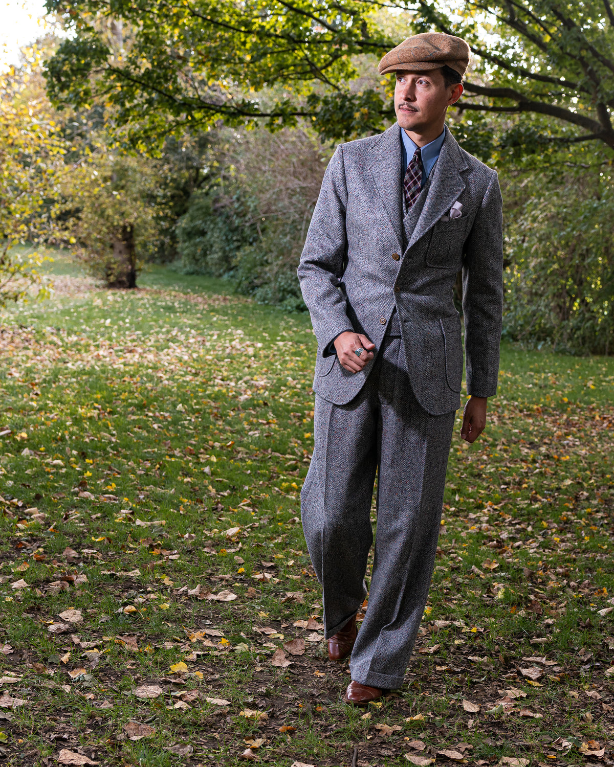 This service allows you to craft your period-correct suit using vintage pattern grading systems and the finest British fabrics. From the number of buttonholes to the selection and placement of buttons, from pocket styles to waistband features, and to a plethora of further customisable options, you hold complete dominion over every aspect of your suit. Delve into a world of limitless possibilities, exploring thousands of combinations to create the ideal suit, tailored precisely to your exact measurements and unique style. Whether you're after a 1936 dinner jacket or a post-war lounge suit, every commission channels timeless elegance with quiet confidence.